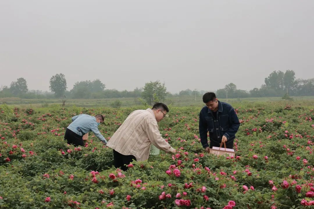 随后,大家前往仪征谢馥春芳香产业生态园参加志愿服务活动。据了解,2020年,为响应市委市政府“千企联千村、共走振兴路”的行动号召,谢馥春公司与仪征市陈集镇沙集村开展村企联建,建设了谢馥春品牌产品原产地地标——玫瑰芳香产业生态园。5月,玫瑰正值盛放,花田芳香醉人,但300亩的玫瑰花田碰上花期,采摘人手紧缺,40多名青年团员们撸起袖子加油干,加入了采摘玫瑰的大军,一上午的时间,个个都出了一小身汗,但看着满满一筐娇艳欲滴的玫瑰,想着马上就能送进当地的车间进行烘干生产,为村企建设带来效益,大家都由衷感到开心和满足。