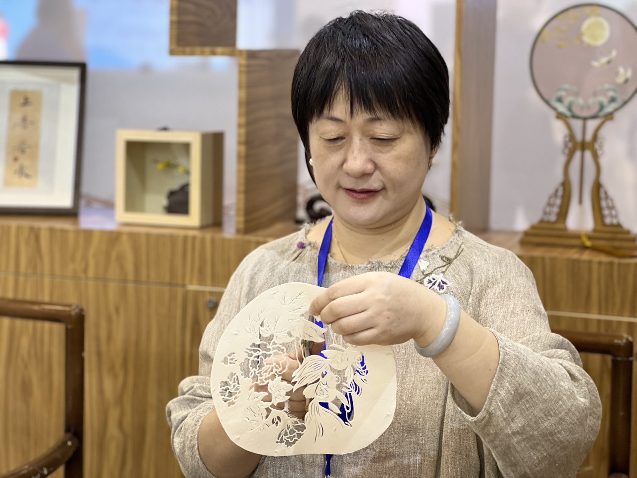 扬州剪纸,妙剪生花。展会现场,扬州剪纸非遗传承人以其精湛的技艺,为展会嘉宾进行现场展演。展台上一幅幅以花鸟鱼虫、人物美景、吉祥图案为主题,细腻入微、栩栩如生的剪纸作品引人驻足。扬州剪纸以其独特的艺术语言,讲述着扬州人的故事,传递着对生活的热爱与向往。